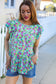 All For You Mint Floral Yoke Flutter Sleeve Keyhole Back Top