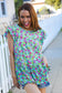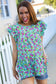 Make a statement with this mint floral print tiered ruffle top with a back clasp keyhole. Designed with flutter sleeves and merrow stitching, this charming top is simply divine.