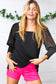 Charm with this stunning black top top with long cuffed pleated lace bubble sleeves. This top is perfect for any occasion; from the office to a dinner date.