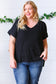 Elevate your average short sleeve top with this trendy piece made with super soft ribbed knit, side slits, v neck and cuffed sleeves. This casual high-low to is super soft and offers comfort for wherever you're headed!