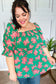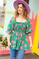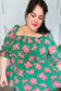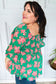 Sumptuous In Smocked Green & Coral Flower Print Babydoll Top