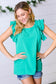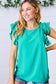 Kelly Green Double Ruffle Sleeve Crinkle Top
