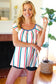 Get noticed in the green, blue, yellow, pink and red vertical striped top. With a square neck, flutter sleeves and a contrast neck binding, glam up any casual ensemble with this stunning top.