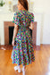 All For You Navy Multicolor Abstract Print Smocked Waist Maxi Dress