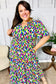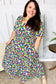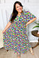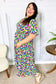 Look more than lovely in this short sleeve fit & flare abstract print maxi dress. With a smocked waist, a notched yoke and a frill collar, this stunning dress will be your go-to this spring and summer.