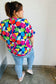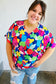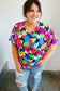 This tropical floral print woven dolman top with banded short sleeves, a wide V neck and a drop shoulder design has a flattering drape and adds charm to any outfit.