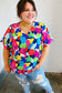 Time For Sun Navy Multicolor Tropical Print V Neck Top