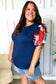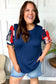 Stand-Out Navy Patriotic Patchwork Puff Sleeve Top