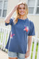 Patriotic Denim Blue French Terry Plaid Star Patch Top