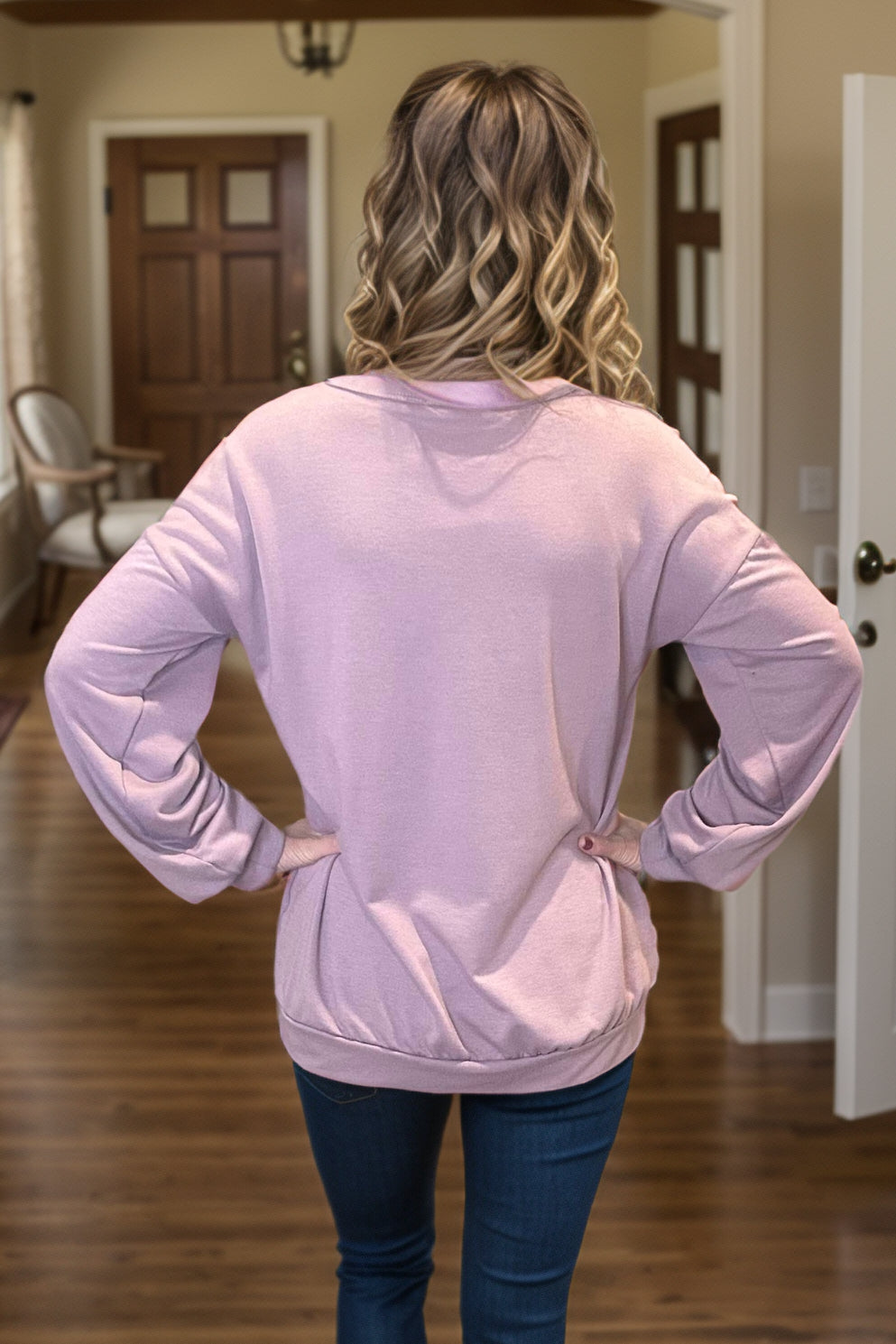 Get ready to "ride the lightning" in this lavender pullover! The round neckline and relaxed fit make it perfect for lounging, while the banded hem adds a touch of style. And with a bold graphic print, you'll stand out in this quirky and comfortable piece.