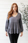 Keywords: Gray Top, Long Sleeve Top, Tiered Top, Work Wear