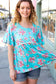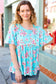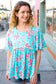 Sky Blue Short Sleeve Floral Peplum Babydoll Top