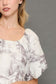 Make a statement with this two-tone toile print top, showcasing a bold and sophisticated design. The contrasting colors add visual interest and depth to the print. Perfect for adding a touch of elegance to your outfit, whether dressed up or down.